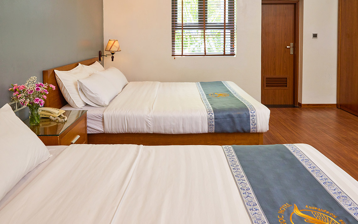 Phòng rộng với 2 giường x 1.5m, hướng núi, cung cấp một loạt các tiện nghi và trang thiết bị đầy đủ. Phòng thích hợp cho gia đình 4 người lớn + 2 trẻ em hoặc nhóm bạn bè dưới 6 người.